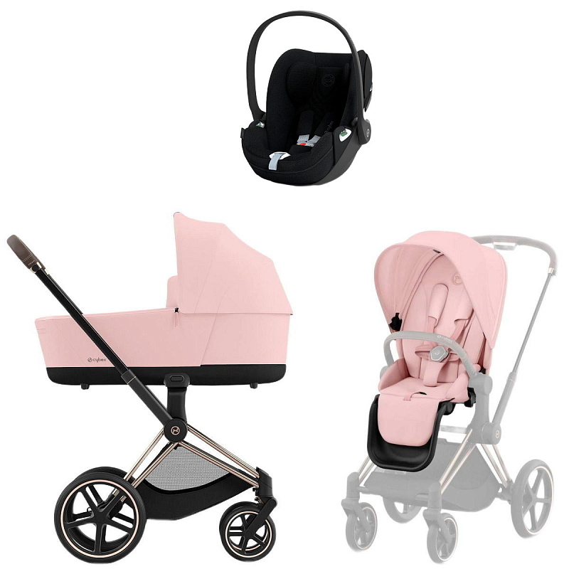 Коляска Cybex Priam IV Rosegold complete Cloud T Sepia Black Plus Base T 3 в 1 Peach Pink