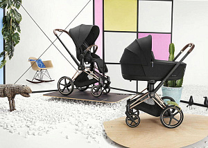 Cybex Priam IV 3 в 1 (Сайбекс Приам 4) является самым полным комплектом немецкой гибридной универсальной премиальной коляски, который удовлетворит все изысканные потребности с первых дней жизни вашего малыша до достижения им 4-летнего возраста. Данная модель коляски Priam IV имеет шасси модели в расцветке Rosegold (рама розовое золото, бампер и ручка в коричневом оттенке) и упакована в одну коробку, в комплекте также автокресло Cloud G i-Size Fog Grey.