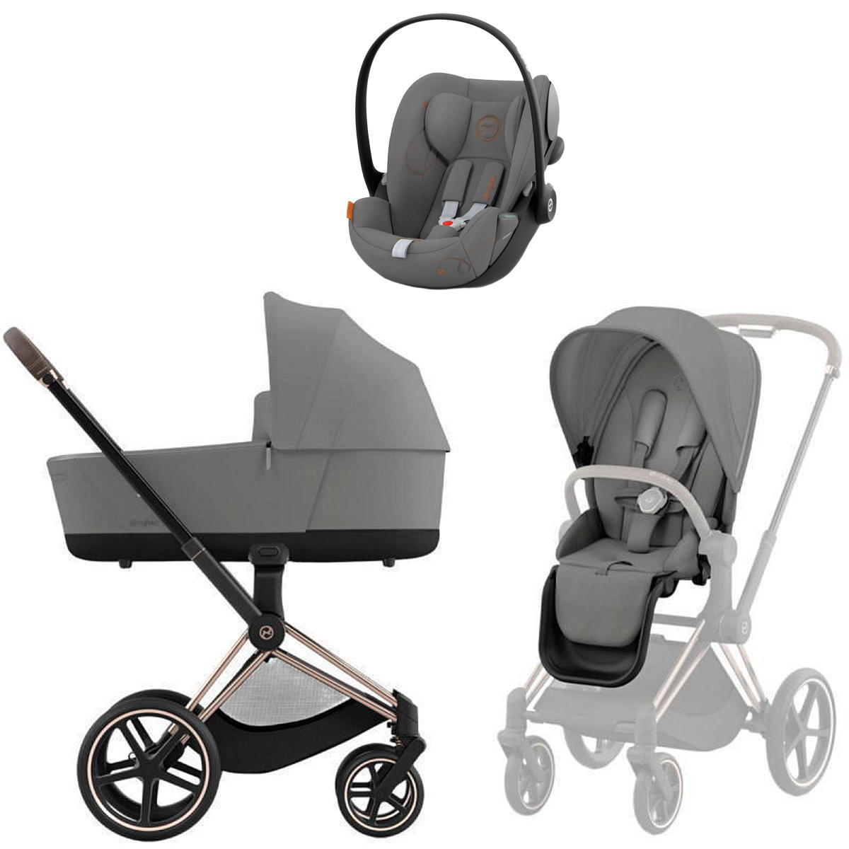 Коляска Cybex Priam IV Rosegold complete и автокресло Cloud G i-Size Lava Grey 3 в 1 Mirage Grey