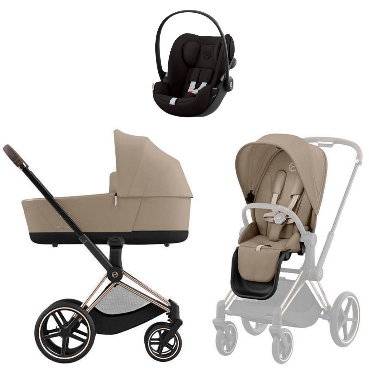 Коляска Cybex Priam IV Rosegold complete и автокресло Cloud G i-Size Magic Black 3 в 1 Cozy Beige
