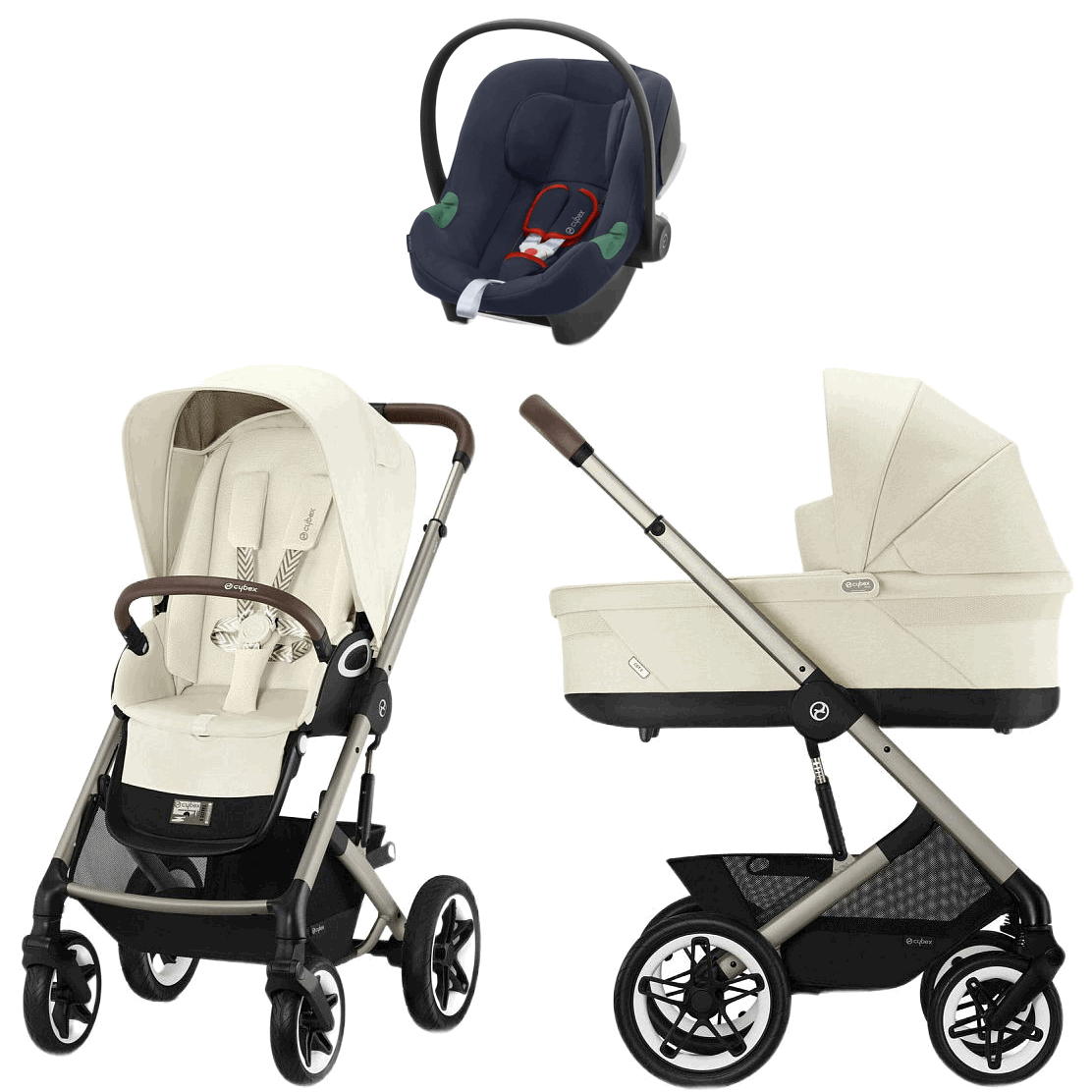 Коляска Cybex Talos S Lux TPE complete Aton B2 Bay Blue 3 в 1 Seashell Beige с дождевиками