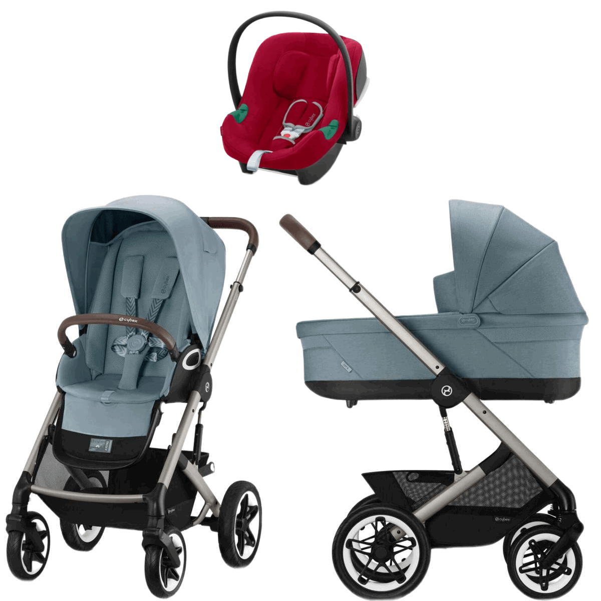 Коляска Cybex Talos S Lux TPE complete Aton B2 Dynamic Red 3 в 1 Stormy Blue с дождевиками