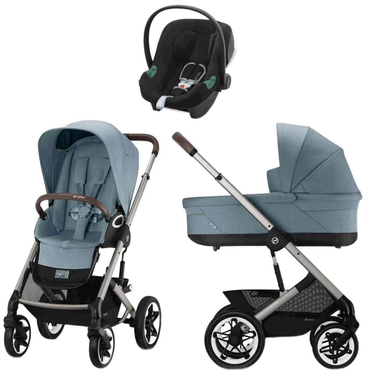 Коляска Cybex Talos S Lux TPE complete Aton B2 Volcano Black 3 в 1 Stormy Blue с дождевиками