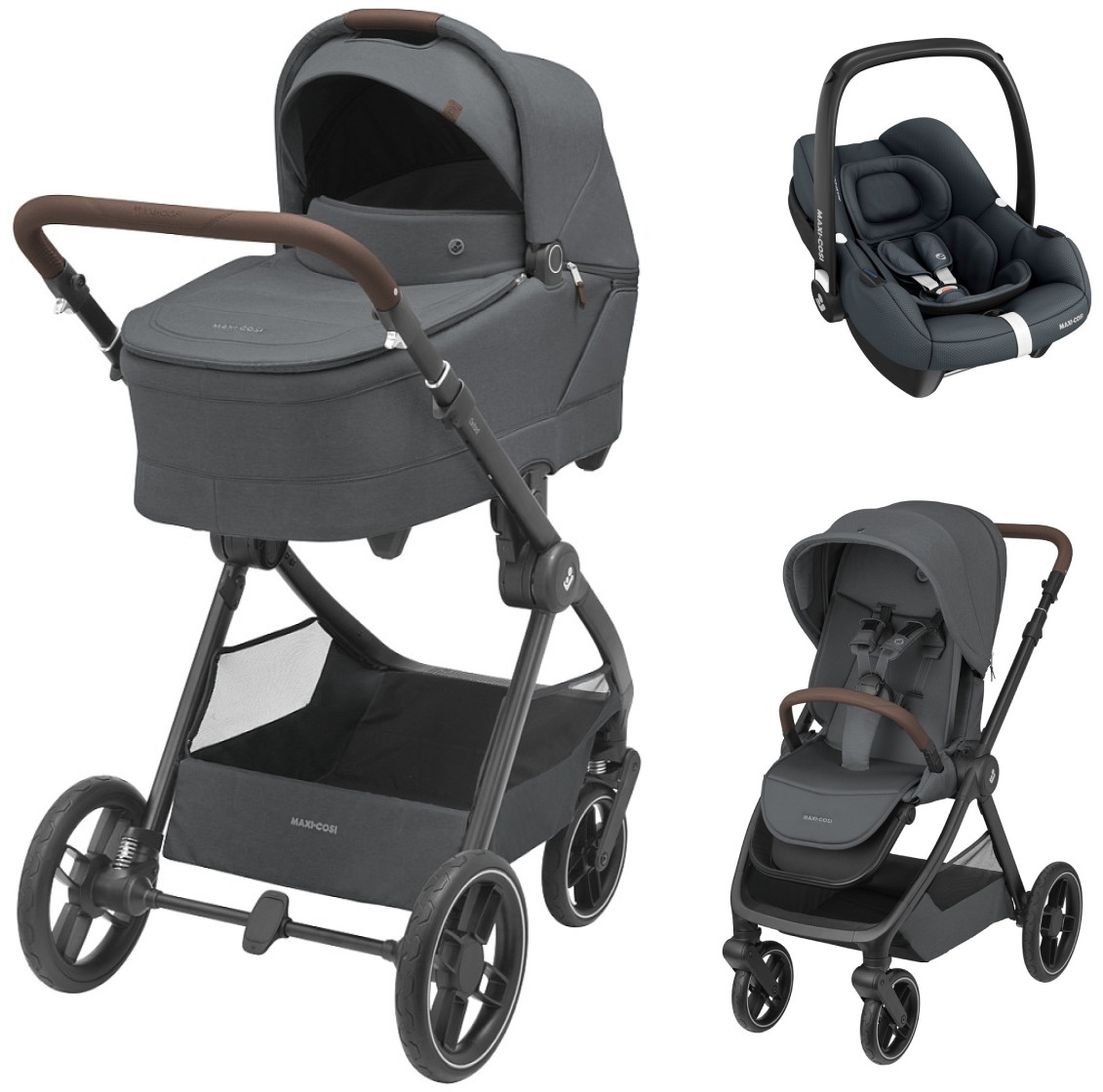 Maxi-Cosi Oxford Plus 3 в 1 включает в себя просторную и компактную прогулочную коляску Oxford Plus, роскошную удобную люльку для новорожденных Sense, а также автокресло CabrioFix i-Size