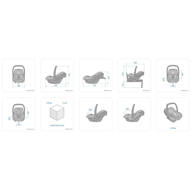 В комплектацию входит: Люлька Sense, Рама, Адаптеры для установки люльки Sense, Прогулочный блок,автокресло CabrioFix i-Size, Инструкция