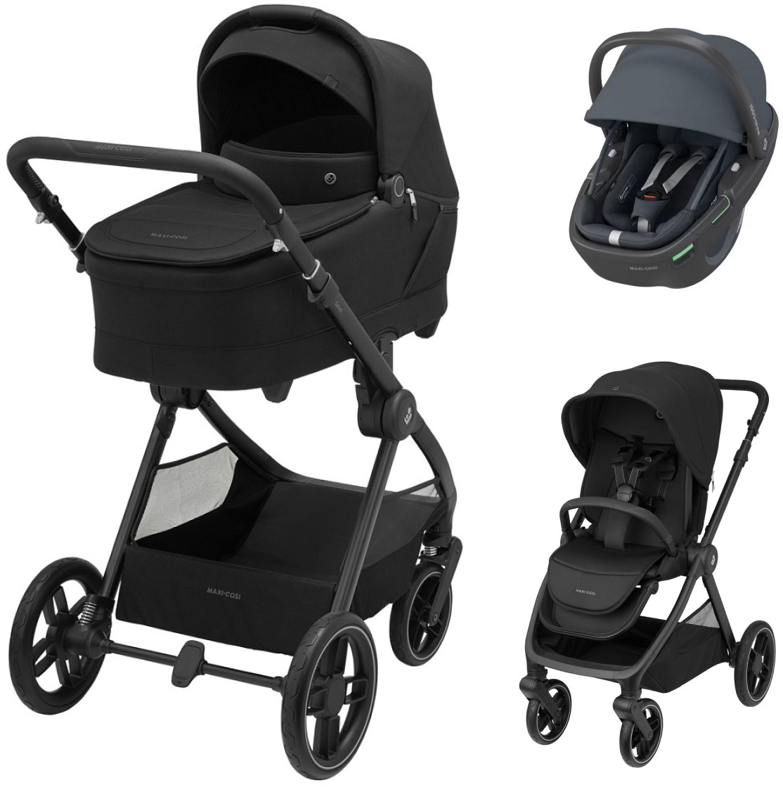 Коляска детская Maxi-Cosi Oxford Plus 3 в 1 с автокреслом Coral 360 Essential Graphite включает в себя просторную и компактную прогулочную коляску Oxford Plus, а также роскошную удобную люльку для новорожденных Sense.