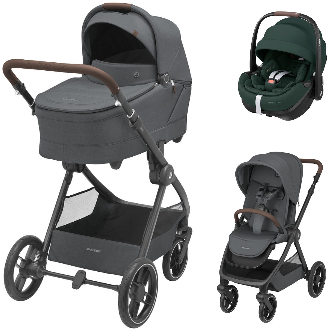 Коляска детская Maxi-Cosi Oxford Plus 3 в 1 с автокреслом Pebble 360 Pro Twillic Green 1978204110 PlusTwillic Graphite/Графит