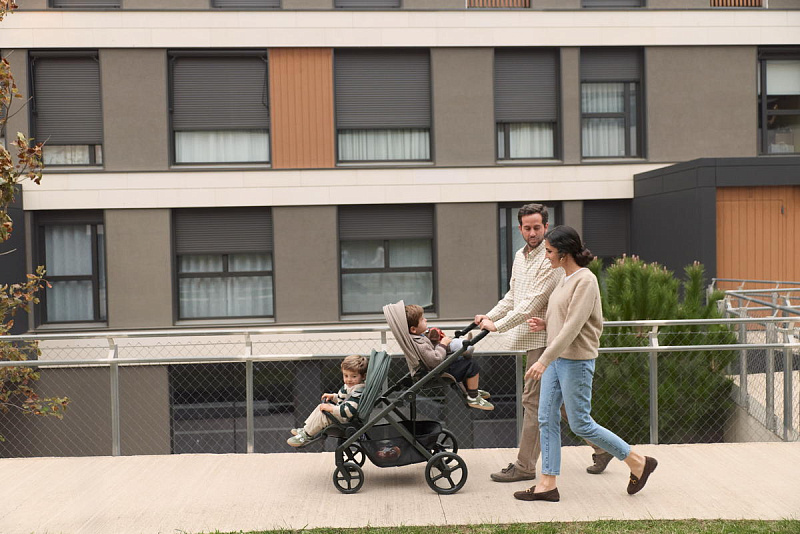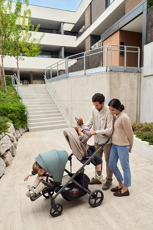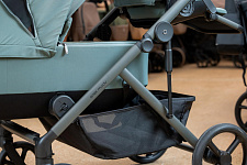 Колёса из современного PU-материала дарят коляске Anex Modu невероятно мягкий и тихий ход. Специальная система антивоблинга предотвращает вибрацию, гарантируя плавность хода на любом покрытии. Для движения по песку или снегу передние колёса фиксируются в прямом положении – это значительно повышает проходимость, позволяя коляске уверенно преодолевать бездорожье. Усовершенствованная конструкция с амортизаторами на передних колёсах и раме обеспечивает повышенную устойчивость и мягкость движения. Просторная корзина для покупок с грузоподъемностью до 10 кг легко вместит все вещи малышей. Предусмотрен отличный доступ к вещам, вы без проблем достанете даже крупные предметы.