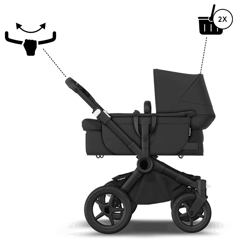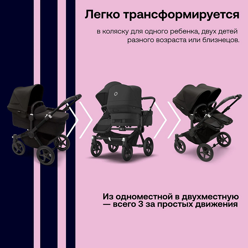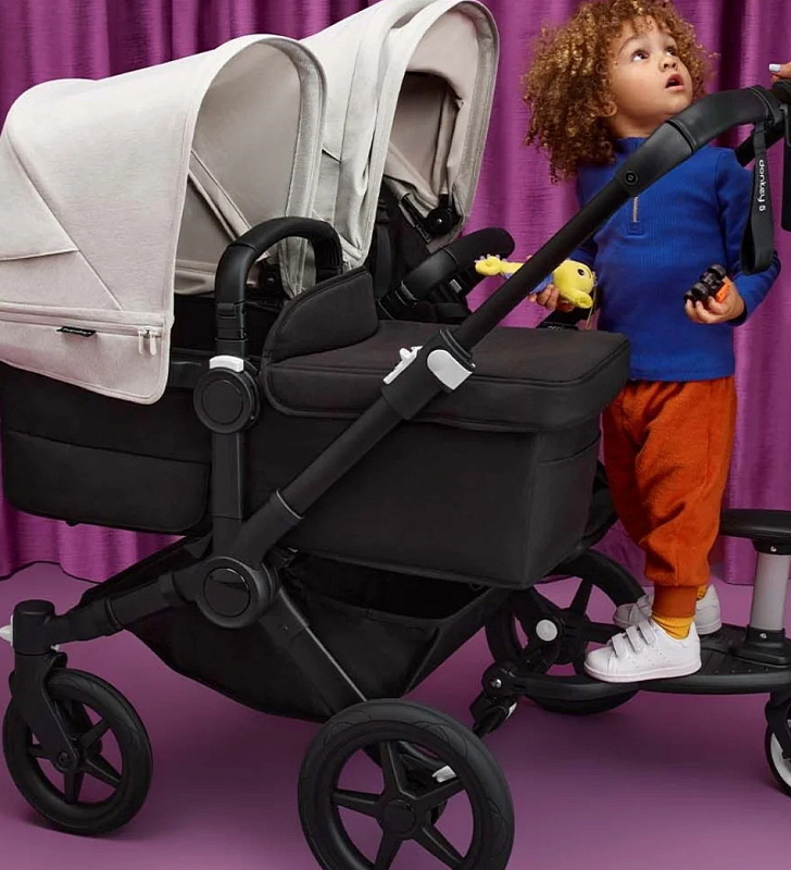 С увеличением семьи возникает необходимость в большей коляске, которая сможет максимально адаптироваться под любые условия. Которая будет вмещать все самое важное и необходимое, но в то же время проходить через стандартные дверные проемы, лифты и иметь интуитивно понятный дизайн. Как модель Bugaboo Donkey 5, которую можно легко трансформировать в коляску для двух детей разного возраста или близнецов.