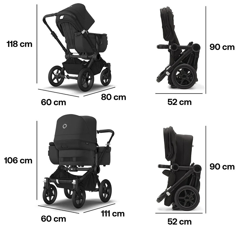 Bugaboo Donkey 5 для одного ребенка (с боковой корзиной для багажа) шириной всего лишь 60 см, а в конфигурации для двух детей — 74 см. Она легко проходит через любой стандартный дверной проем, при этом вмещая все самое необходимое.
