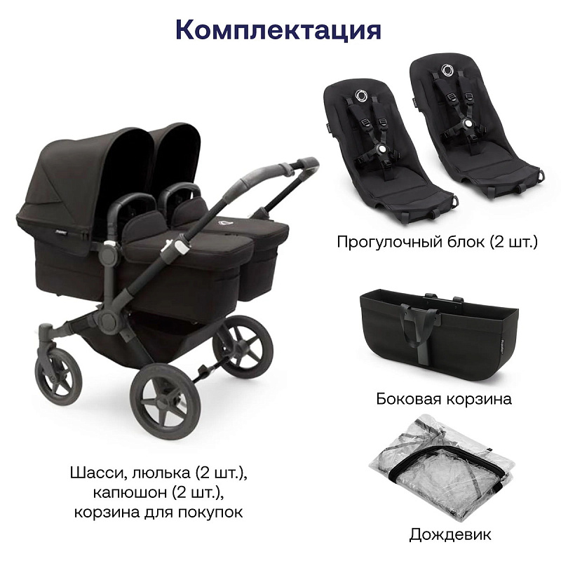 Коляска для двойни Bugaboo Donkey 5 Twin шасси Black Midnight Black-Midnight Black