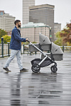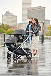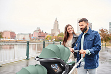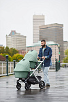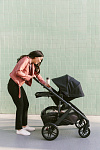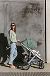 Благодаря мягким шинам и новой пружинной амортизации на всех колесах коляска сохраняет плавный ход во время прогулок независимо от дорожного покрытия и количества детей внутри.