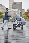 В базовый комплект входит: шасси, люлька (2 шт) для новорожденного с москитной сеткой, дождевиком и чехлом для хранения люльки, прогулочный блок с москитной сеткой и дождевиком, дополнительный прогулочный блок и два адаптера.