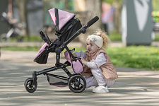 Когда ребенок решит, что её малыш вырос, превратите люльку в прогулочный блок с регулируемым капюшоном. Перекидная ручка позволит всегда видеть пупса, а ремни безопасности защитят его от случайного выпадения. И конечно, сумка для всего необходимого, как в настоящей коляске.