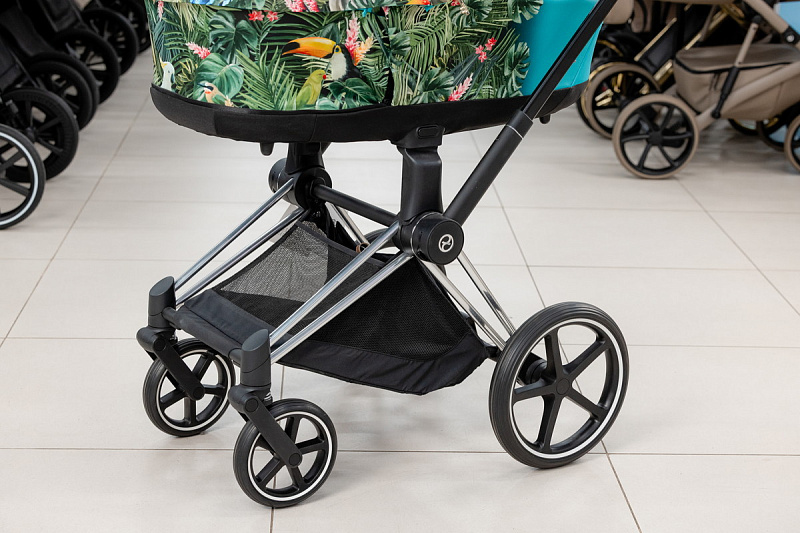 Безопасность вашего малыша обеспечивается пятиточечным ремнем безопасности и регулируемой подножкой с тремя положениями. Каркас коляски выполнен из высококачественного и прочного, но легкого алюминия, обеспечивая стабильность и прочность. Благодаря небольшой ширине шасси, коляска легко проходит через любые дверные проемы и помещается в лифт. Кроме того, шасси компактно складывается и имеет двухколесный режим, что позволяет преодолевать препятствия с легкостью. Передние колеса поворачиваются на 360 градусов, придавая коляске Priam невероятную маневренность. Сайбекс Приам 4 имеет очень большую корзину для покупок, выдерживающий вес до 5 кг. Вместительная корзина для покупок раскладывается, когда вам нужно больше места во время поездки или похода по магазинам.