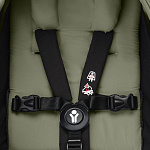 - Новый дизайн текстиля сиденья: мягкий ограничитель (вшит в капюшон), увеличенная высота спинки с защитными накладками на сетчатые ремни.