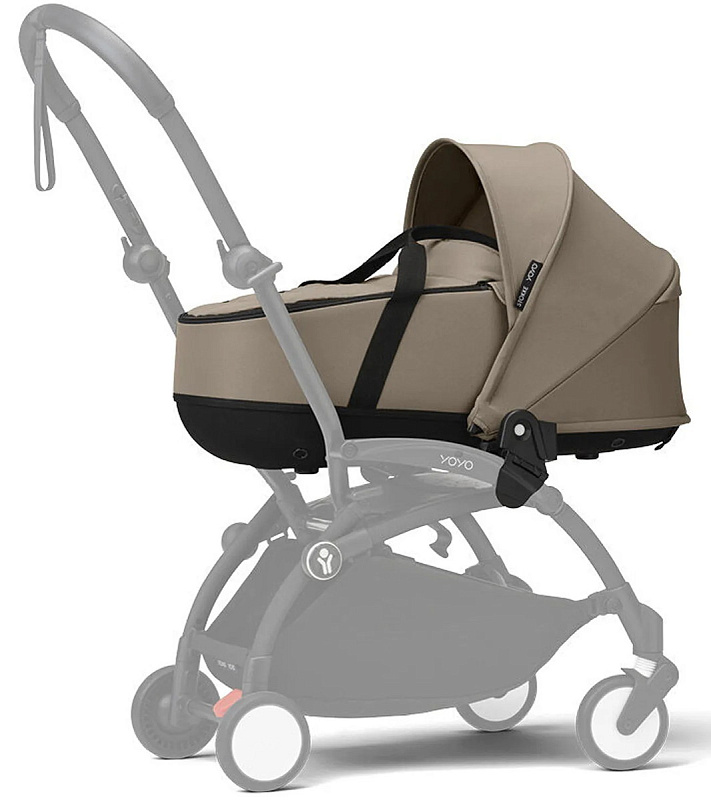 - Люлька для новорожденного легко крепится к раме YOYO3 и может переноситься вручную.