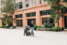Благодаря мягким шинам и новой пружинной амортизации на всех колесах коляска сохраняет плавный ход во время прогулок независимо от дорожного покрытия и количества детей внутри.