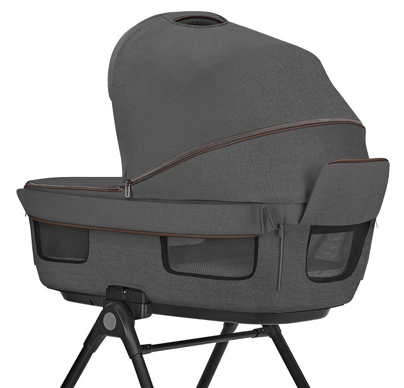 Регулируемый наклон основания люльки обеспечивает удобное положение новорожденному после кормления и позволяет наблюдать за окружающим миром во время бодрствования. Накидка на двух молниях обеспечивает оперативный доступ к малышу.