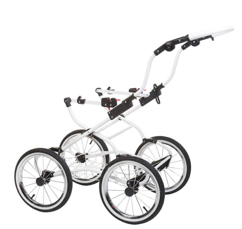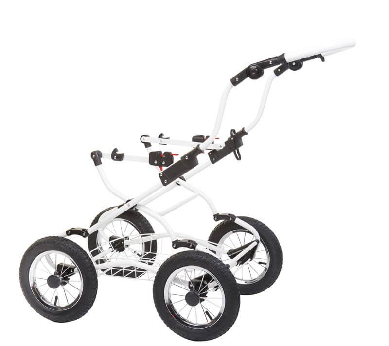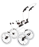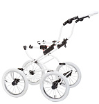 - Мягкость езды во многом зависят от больших надувных колес на спицах с особым механизмом осей. Кстати, колеса можно подкачивать, на шинах есть выраженные протекторы для хорошей проходимости.