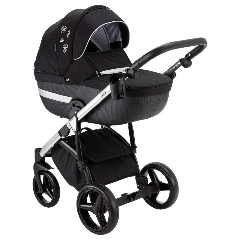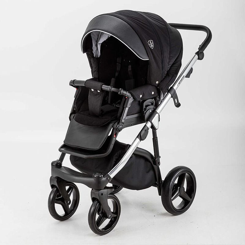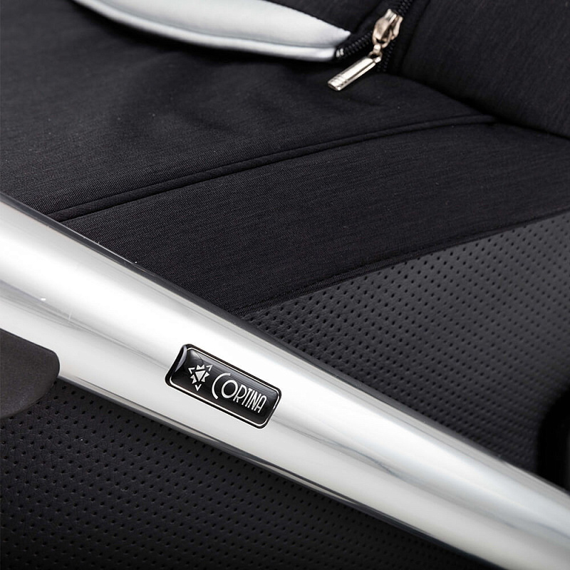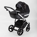 Детская коляска Adamex Cortina Special Edition 3 в 1 CT-401 (ЧЕРН+ЧЕРН.КОЖА+СЕРЕБР.ОТДЕЛКА+СЕРЕБР.РАМА)