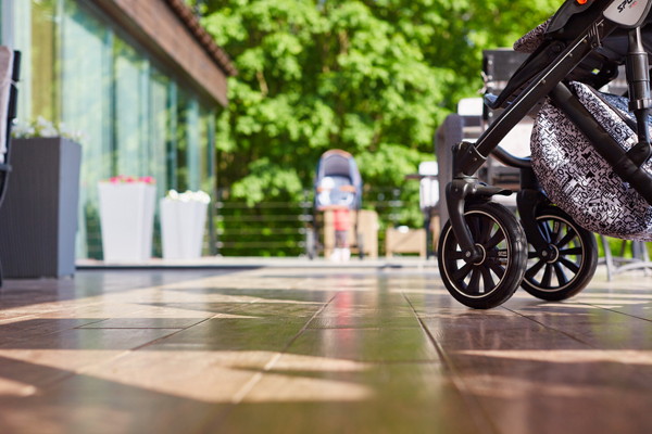 • Козырек защищает от солнца и дождя, а еще от ультрафиолета.