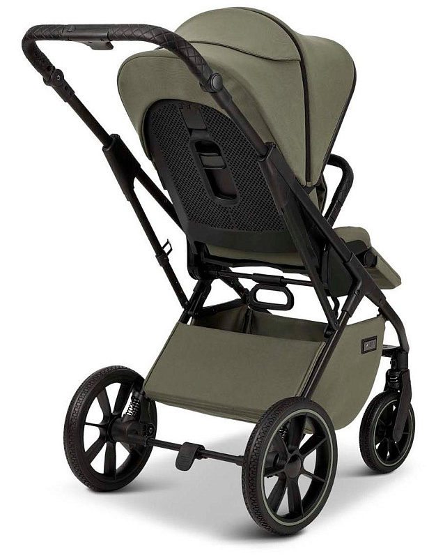 Шасси коляски Moon Piu представляет из себя идеальную конструкцию, в которой продумано абсолютно всё для удобства в использовании. Эксклюзивная, запатентованная брендом «Moon» современная система амортизации как задних, так и передних колёс обеспечивает максимальную плавность хода.