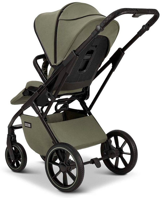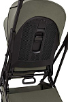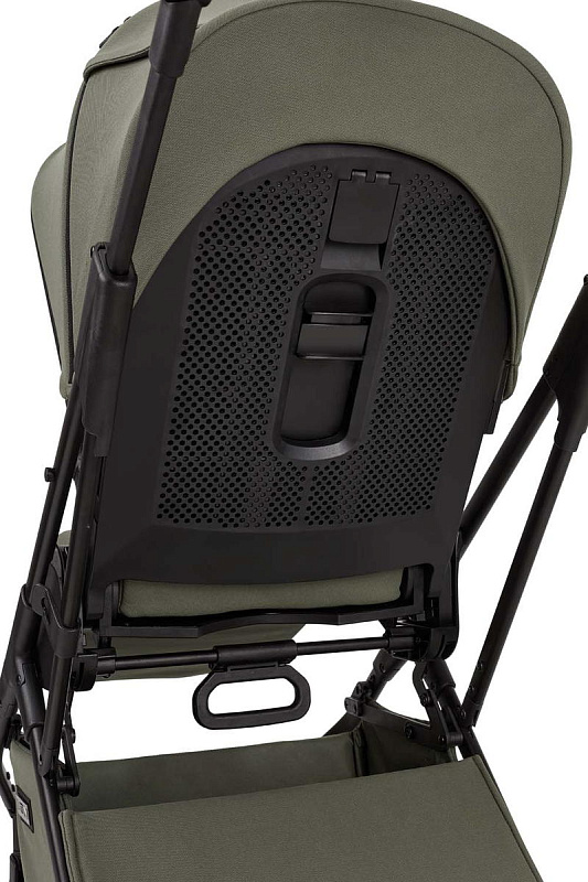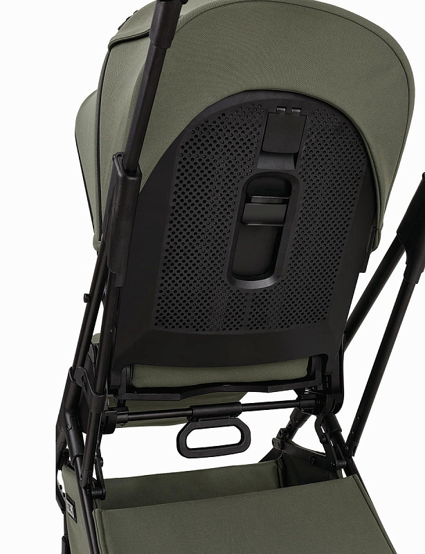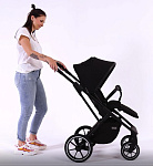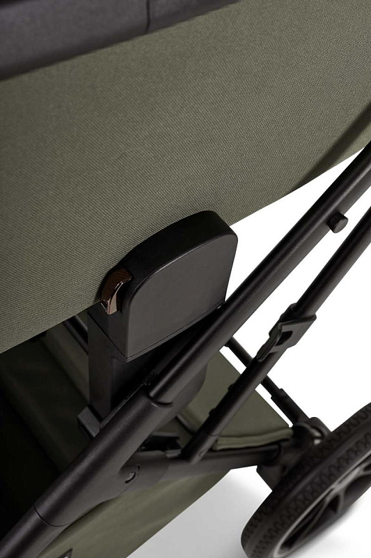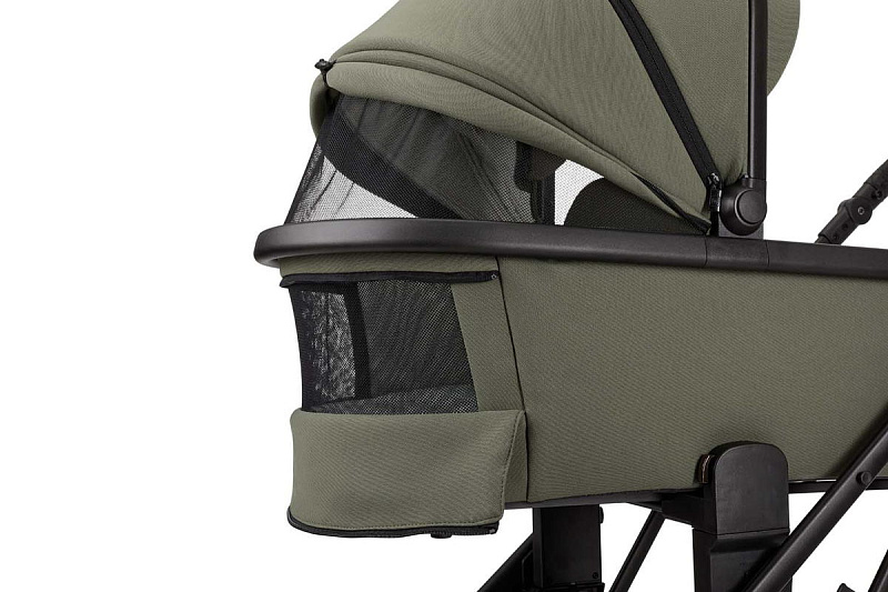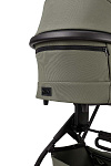 Кнопки установки и снятия с функцией памяти «memory button». Ручка для переноски, обтянутая дизайнерской высококачественной эко-кожей. Ножки для того, чтобы можно было поставить люльку на пол и не испачкать дно. Высокая посадка люльки на шасси (подходит для Родителей любого роста). Панорамная вентиляция (целый отсек на капоре и отделение на люльке спереди).