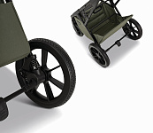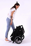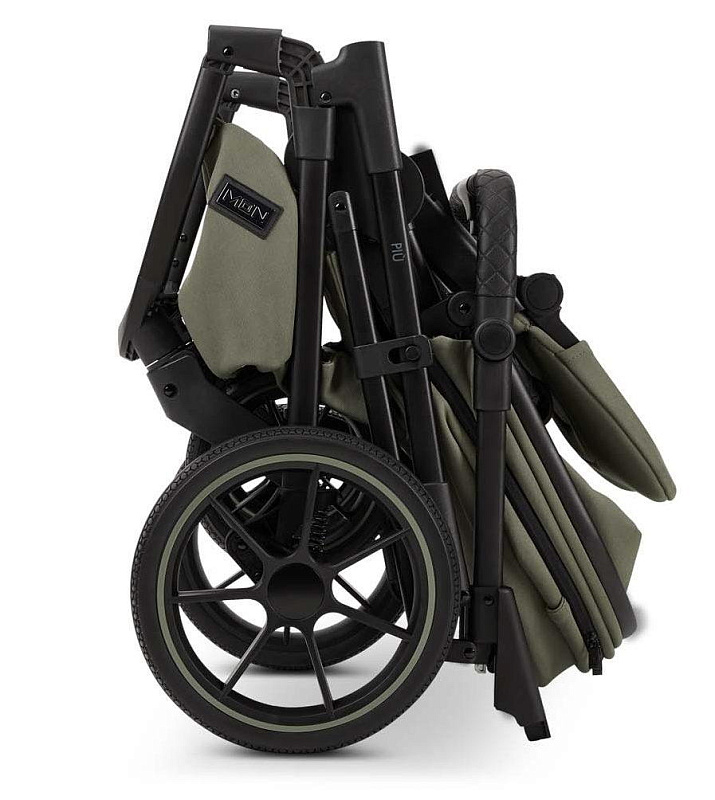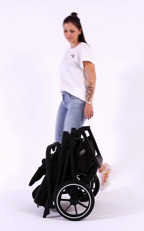 Система складывания (one-hand folding system) позволяет складывать и раскладывать шасси одной рукой с установленным в обоих положениях (лицом к Маме и лицом к миру) прогулочным блоком. Также, предусмотрена дополнительная ручка для перемещения в багажник или домой. Регулировка обтянутой дорогой дизайнерской эко-кожей ручки коляски производится по углу наклона в четырёх, что позволит настроить удобную высоту для использования независимо от Вашего роста. Большие колеса из автомобильной резины дополняют систему амортизации, не изнашиваются и обеспечивают максимальную проходимость коляски Moon PIU в любую погоду. Все четыре колеса легко снимаются и обслуживаются. Передние колёса можно зафиксировать в прямом направлении и смело пробиваться по бездорожью.