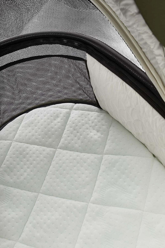 Люлька коляски PIU оснащена перфорированным дном, что в комплекте с дорогим австрийским матрасом бренда Treaumeland представляет из себя запатентованную брендом Moon, систему циркуляции воздуха «CircAir by Moon». Благодаря этому внутри люльки всегда уютно и сухо. Увеличенный капор (XXL) с защитой от дождя, снега и ультрафиолетовых излучений (50 UV+).