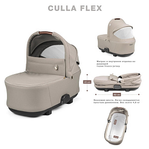 Люлька Culla Flex — идеальный выбор для активных родителей, которые ценят комфорт и функциональность. Она складывается всего одним движением, и с легкостью поместится даже в небольшом багажнике автомобиля. Малышу в люльке будет уютно и комфортно: подкладка и матрасик выполнены из инновационного нежного дышащего материала Fresco Jersey.