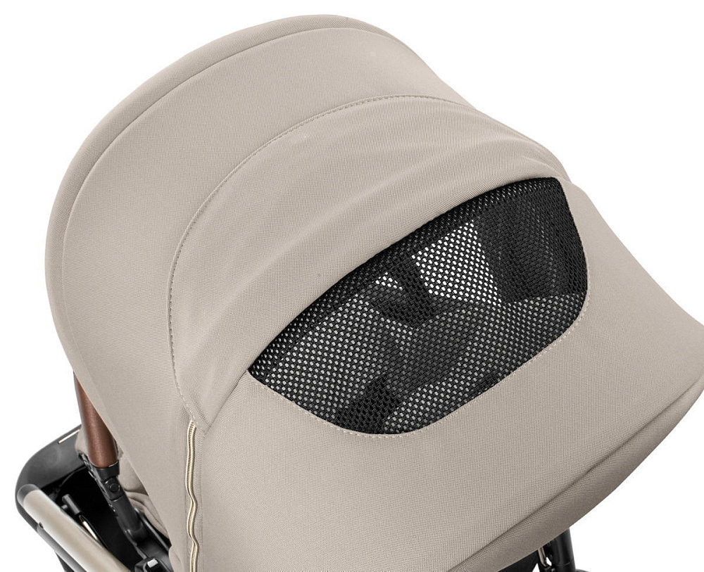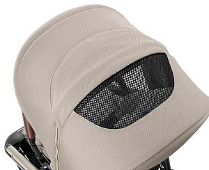 Большой капюшон из солнцезащитной ткани UPF 50+ с козырьком защитит вашего ребенка от непогоды. Сетчатое окошко на молнии обеспечит дополнительную вентиляцию в жаркое время года. Совместима с шасси Veloce, Veloce TC и Vivace. Универсальность и удобство использования.