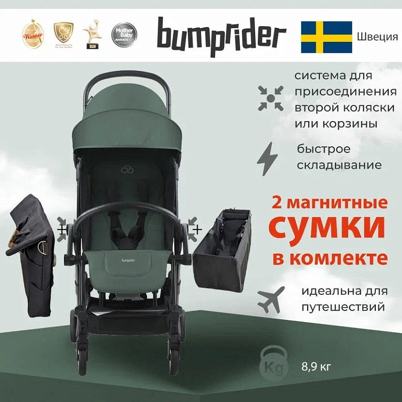 Быстрое складывание, встроенная ручка для переноски и небольшой вес в сочетании с интеллектуальными функциями делают Bumprider Connect 3 лучшей коляской для ежедневных прогулок, путешествий и развития вместе с семьей. В подарочный комплект входят сумка для мамы с пеленальным матрасиком и боковая корзинка, которые увеличат вместимость вашей коляски. Благодаря уникальным магнитным замкам аксессуары крепятся к раме за считанные секунды.