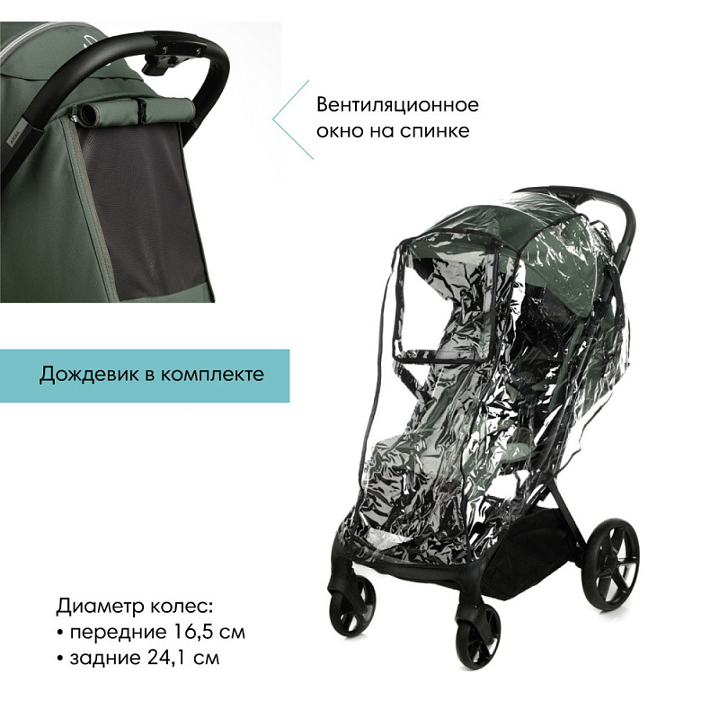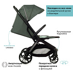 - Просторное сиденье с высокой спинкой обеспечивает правильную поддержку позвоночника. Трехпозиционная регулировка спинки позволяет выбрать оптимальное положение для бодрствования или сна. Мягкая подвеска на всех четырех колесах гарантирует плавный ход на любой поверхности.