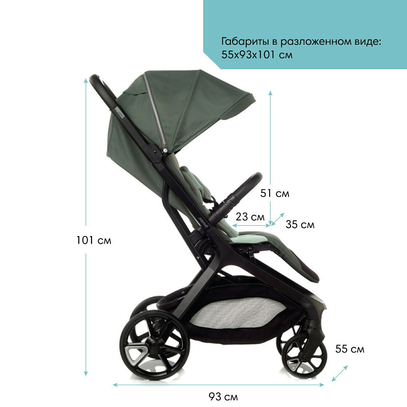 - Коляска оснащена системой складывания одной рукой, что делает ее идеальным вариантом для активных родителей. Компактные размеры в сложенном виде позволяют легко транспортировать и хранить модель. Большая корзина объемом 25 литров предоставляет достаточно места для всех необходимых вещей.