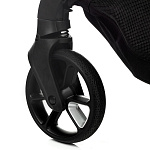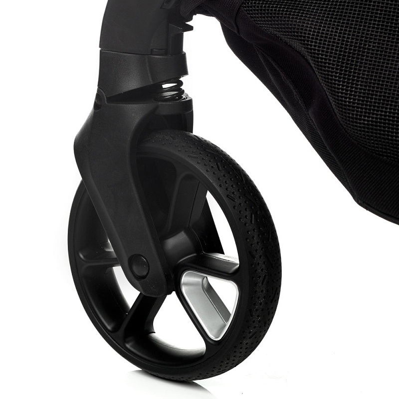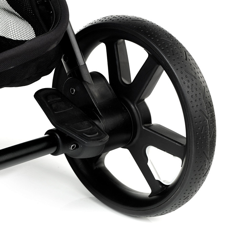 - Поворотные передние колеса с возможностью фиксации обеспечивают легкость маневрирования в городских условиях. Съемные колеса упрощают процесс очистки и обслуживания коляски.