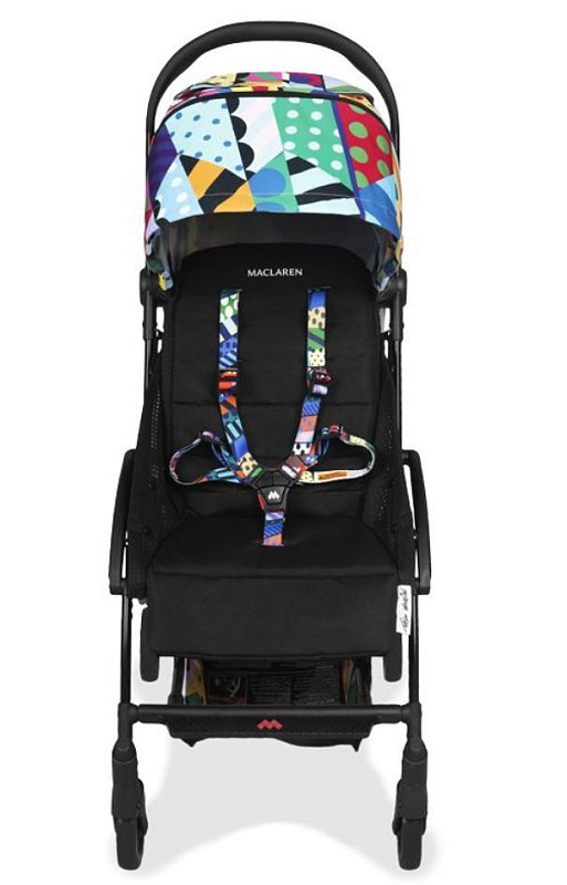 Пятиточечные ремни с накладками, мягкий матрасик с принтом.