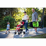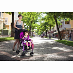 - Маневренность коляски на дороге обеспечивается благодаря четырем сдвоенным парам колес с механизмом блокировки.