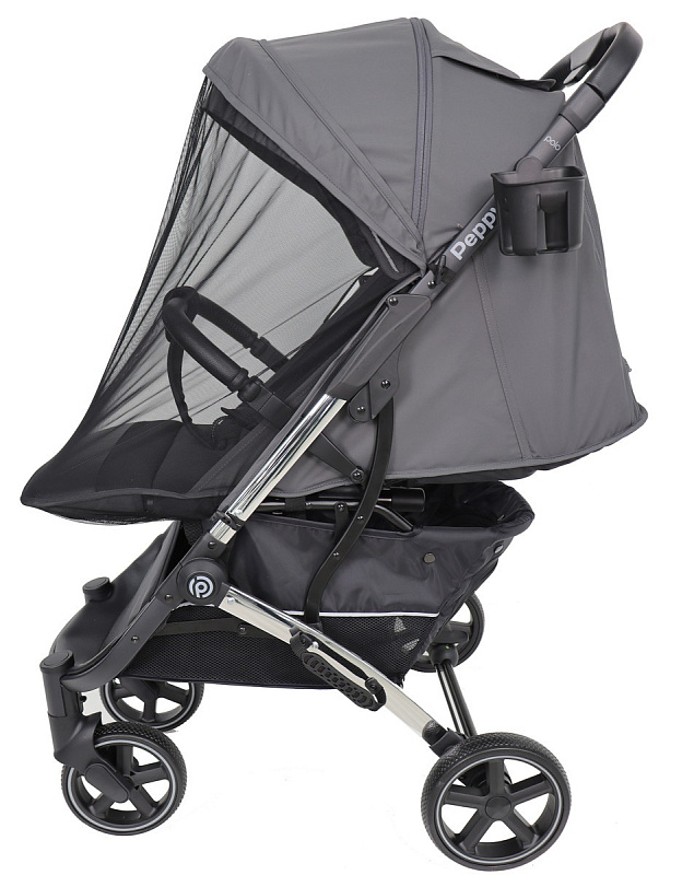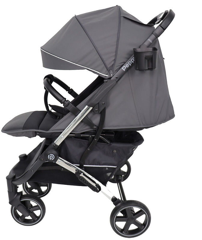 Коляска прогулочная Peppy Polo steel grey хром рама, сумка