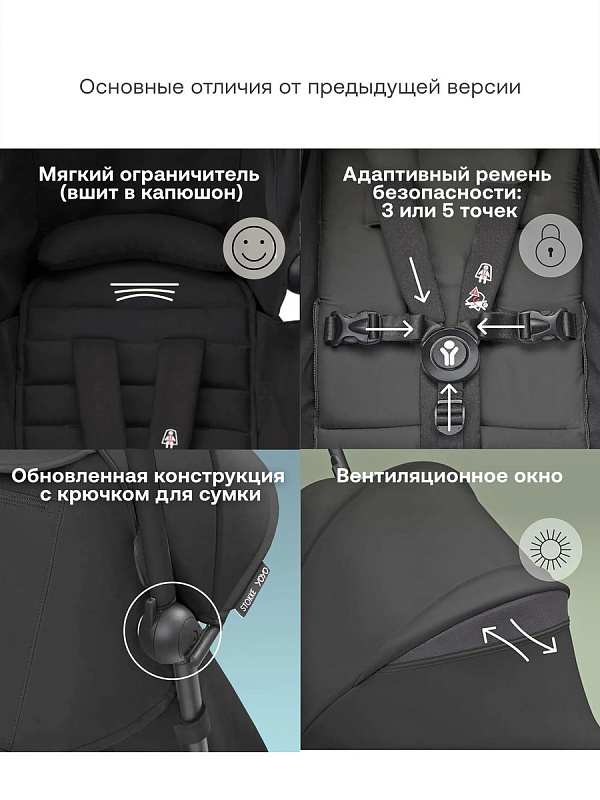 Мы смогли улучшить даже самое лучшее, добавив в коляску YOYO несколько новых возможностей, например дополнительное место для хранения на 10 кг и закрывающееся окно.