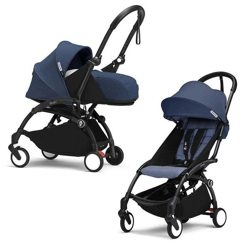 Коляска Stokke YOYO3 Newborn Pack рама чёрная Black 2 в 1 Air France Blue