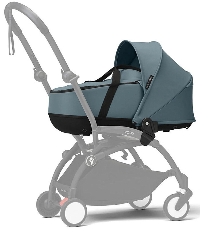 - Люлька для новорожденного легко крепится к раме YOYO3 и может переноситься вручную.