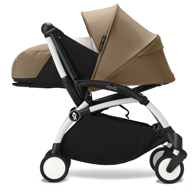 Уютное гнездышко для вашего ребенка – люльку для новорожденного – можно крепить к раме YOYO одним нажатием до щелчка, переносить в руке и ставить на пол.
