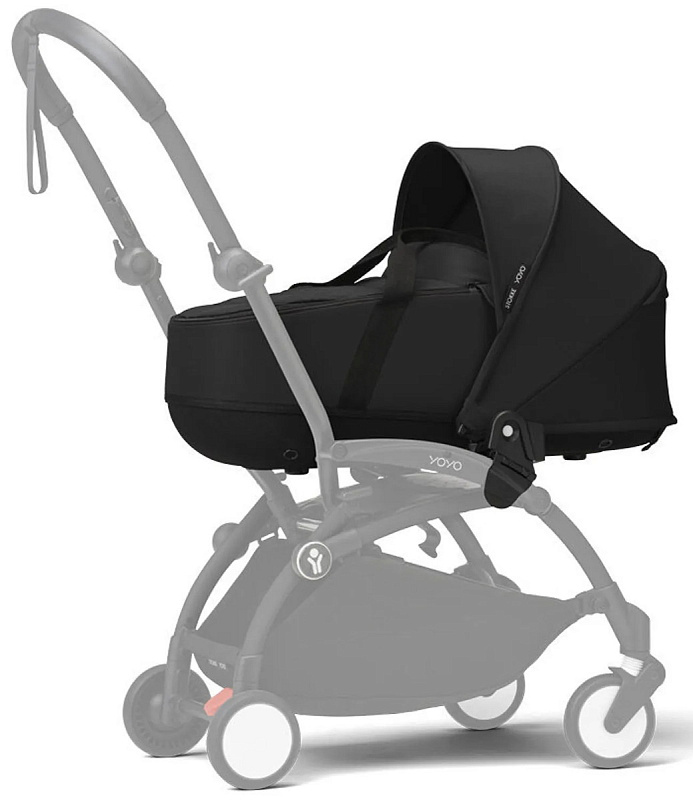 Уютное гнездышко для вашего ребенка – люльку для новорожденного – можно крепить к раме YOYO одним нажатием до щелчка, переносить в руке и ставить на пол.
