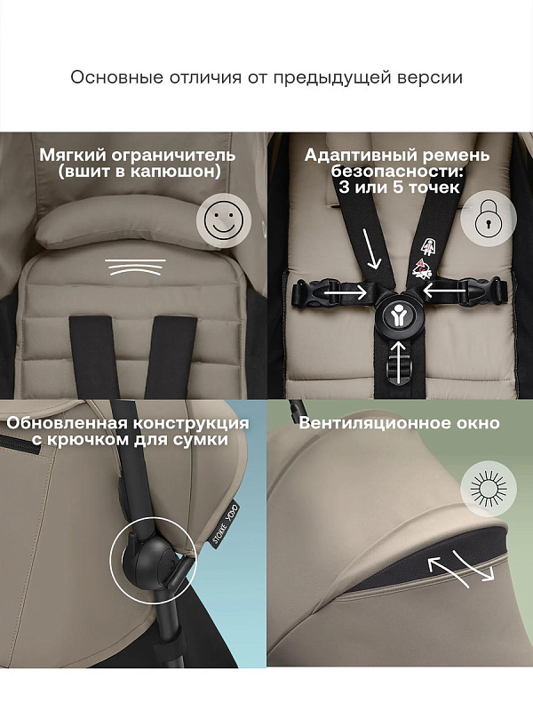 Мы смогли улучшить даже самое лучшее, добавив в коляску YOYO несколько новых возможностей, например дополнительное место для хранения на 10 кг и закрывающееся окно.
