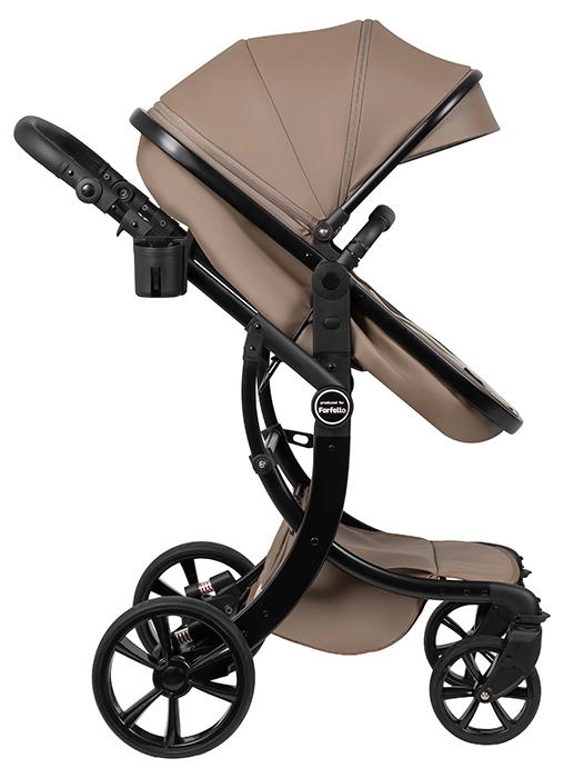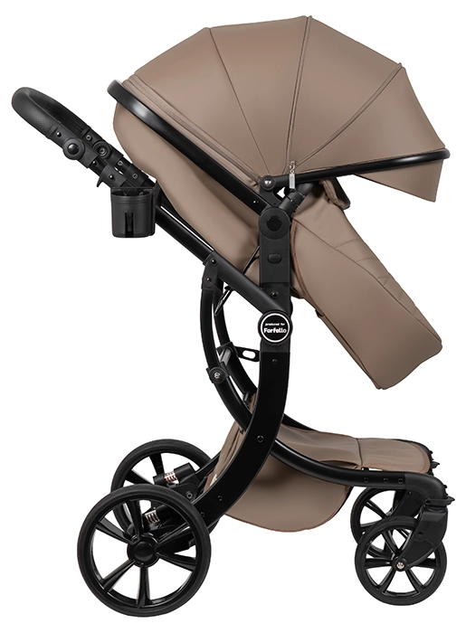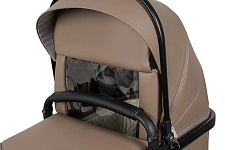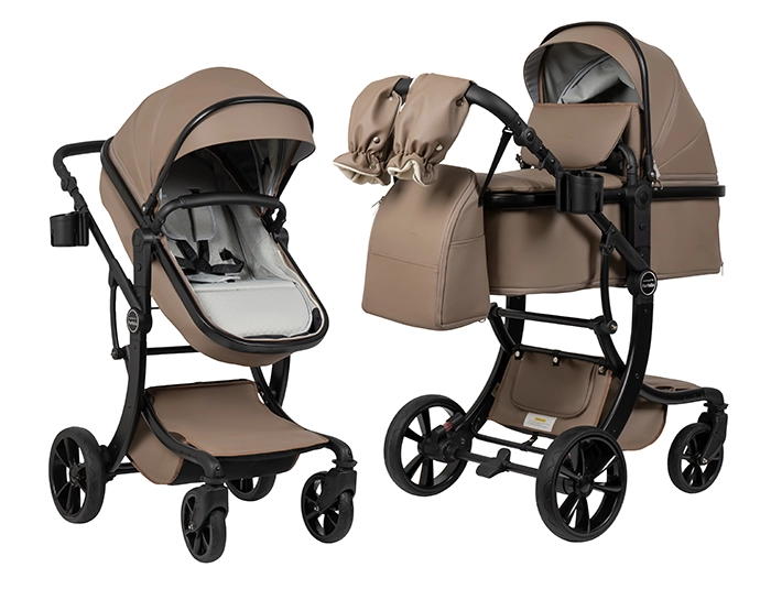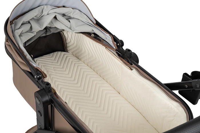Коляска выполнена из экокожи Premium-класса с водоотталкивающей пропиткой, которая не только придает изделию изысканный вид, но и обеспечивает долговечность и простоту в уходе.