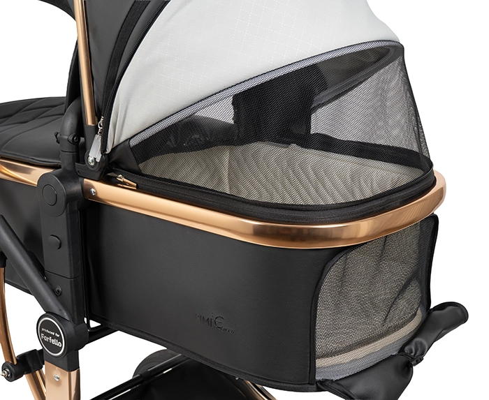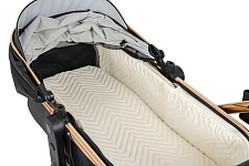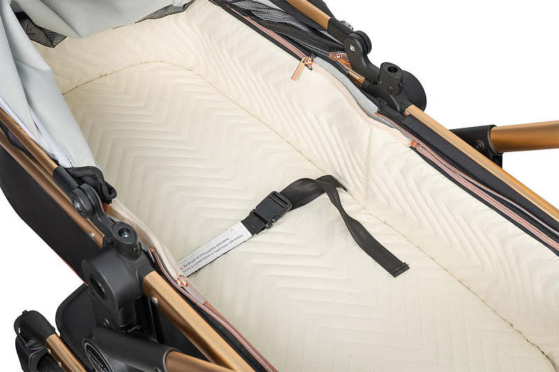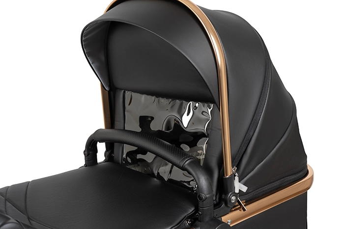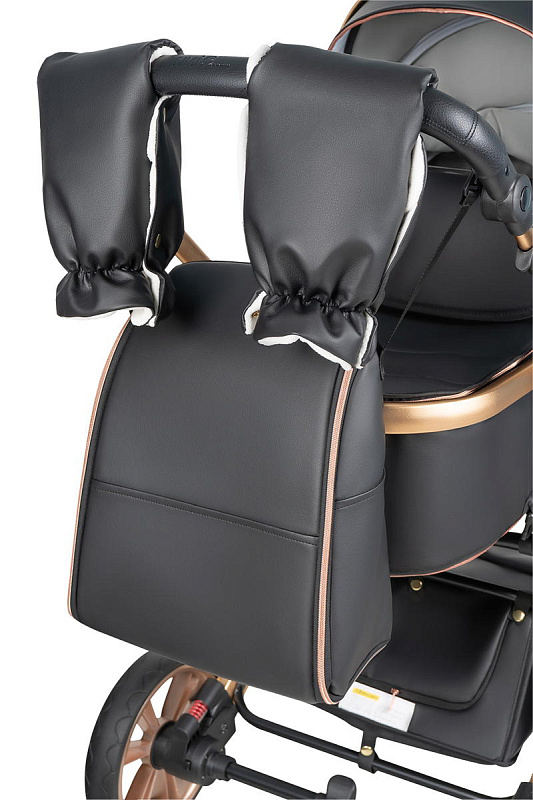 Коляска выполнена из экокожи Premium-класса с водоотталкивающей пропиткой, которая не только придает изделию изысканный вид, но и обеспечивает долговечность и простоту в уходе.