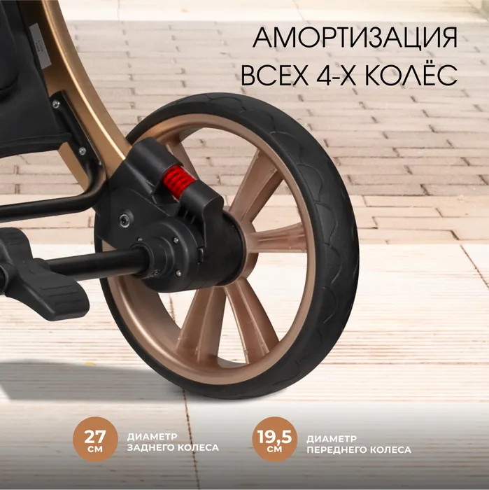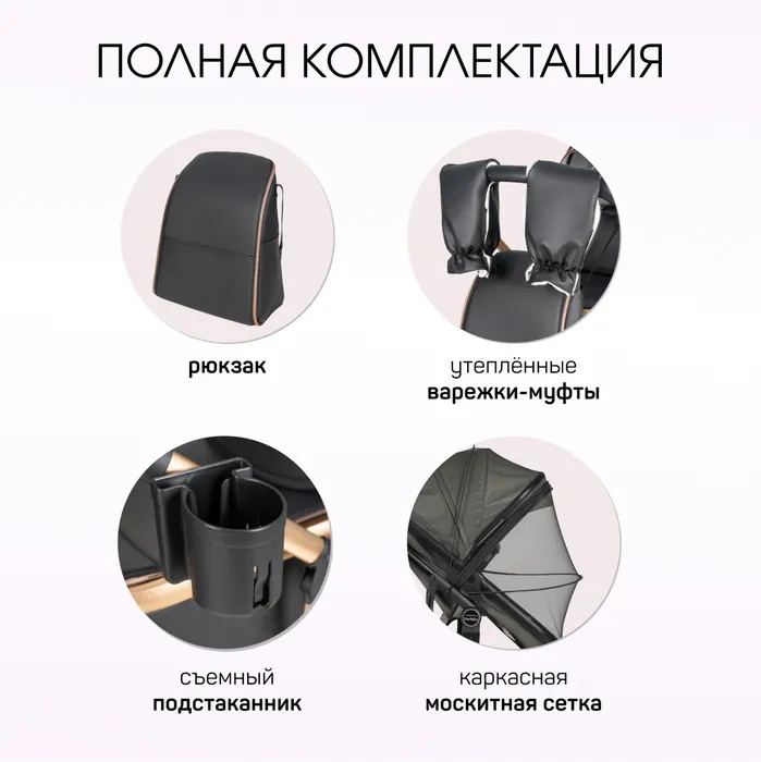 • Круглогодичное использование: коляска адаптирована для любых погодных условий, делая прогулки приятными в любое время года.