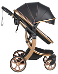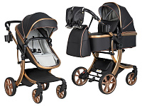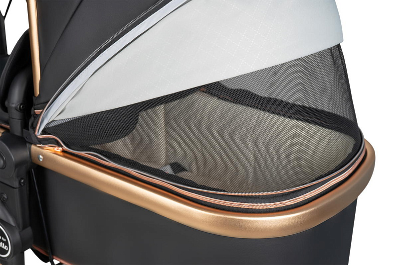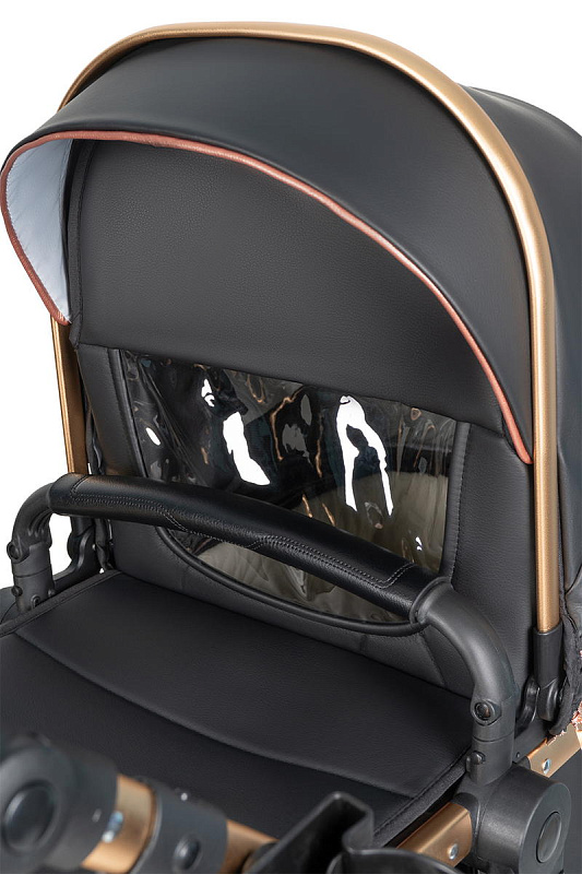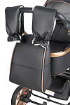 Коляска выполнена из экокожи Premium-класса с водоотталкивающей пропиткой, которая не только придает изделию изысканный вид, но и обеспечивает долговечность и простоту в уходе.
