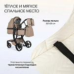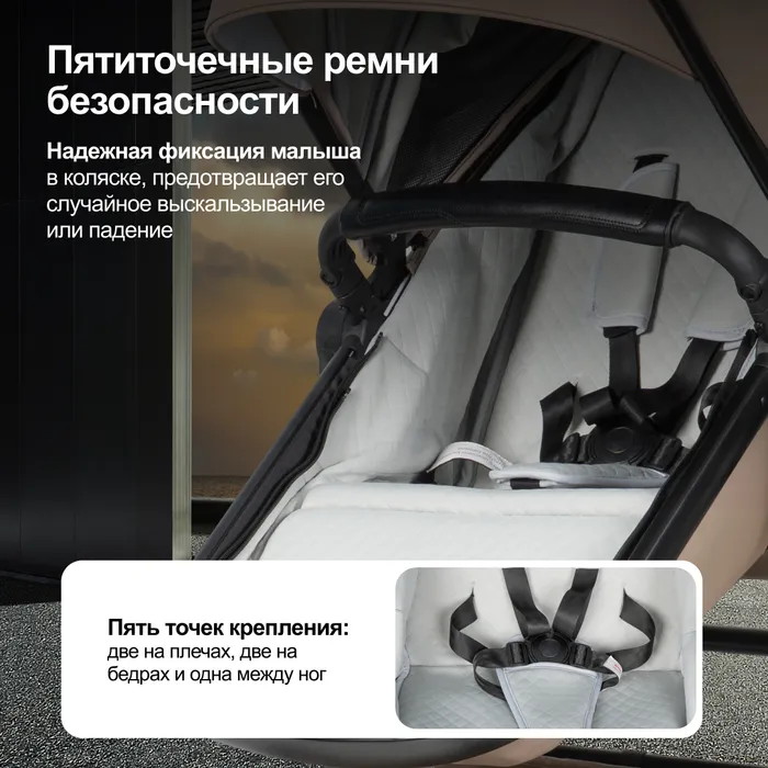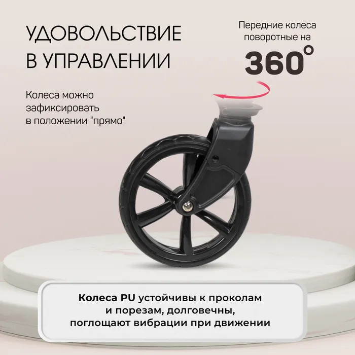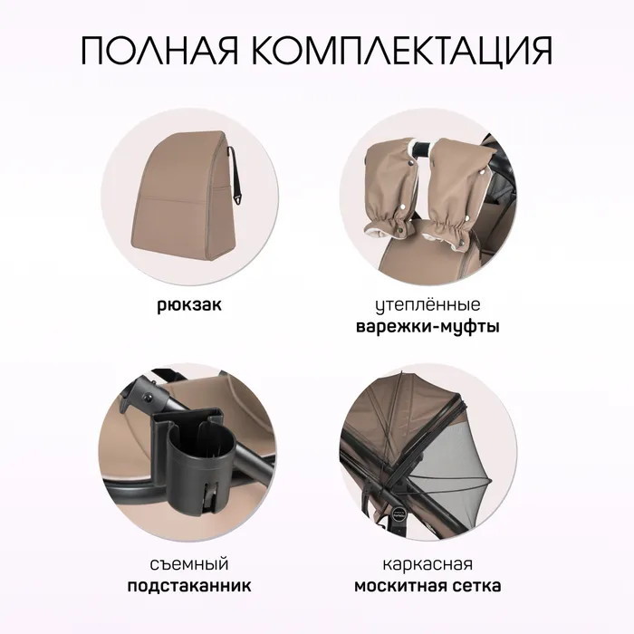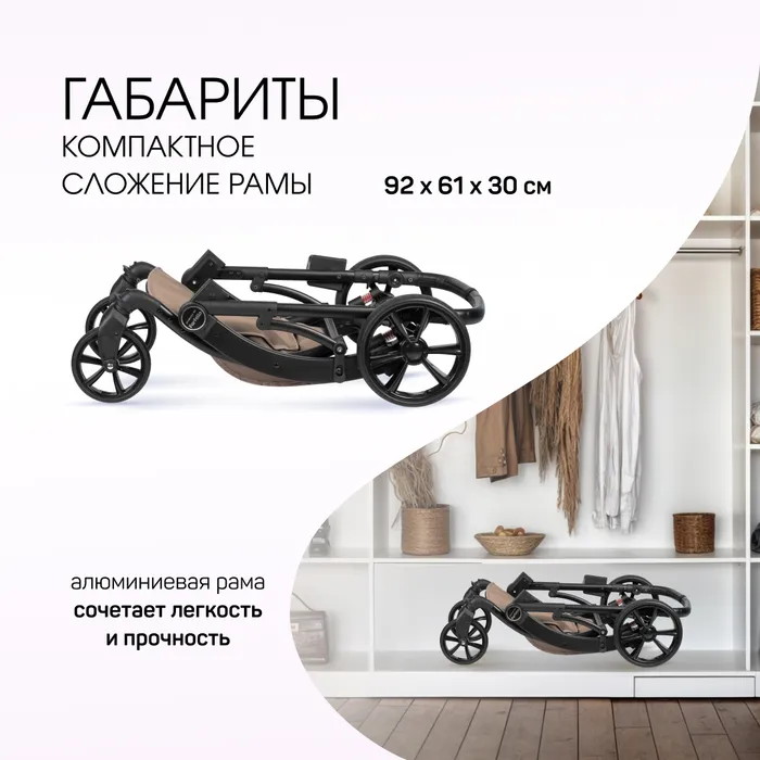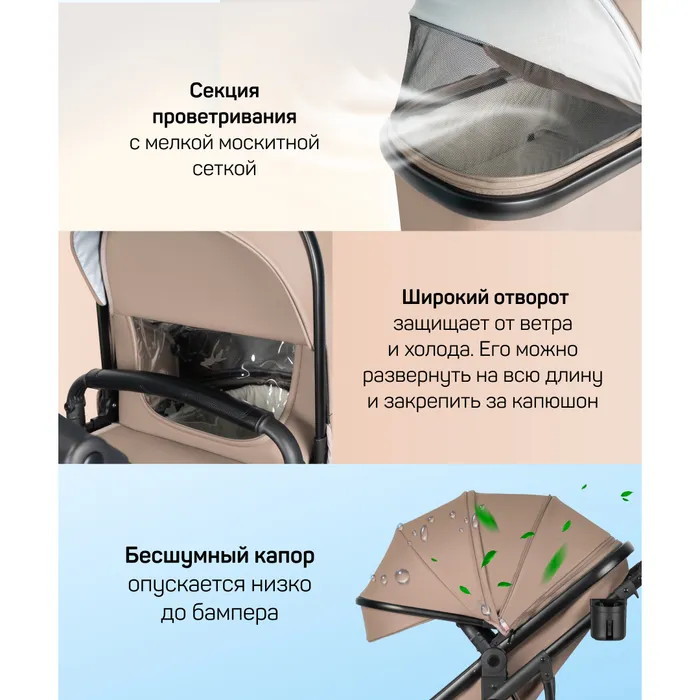 • Круглогодичное использование: коляска адаптирована для любых погодных условий, делая прогулки приятными в любое время года.